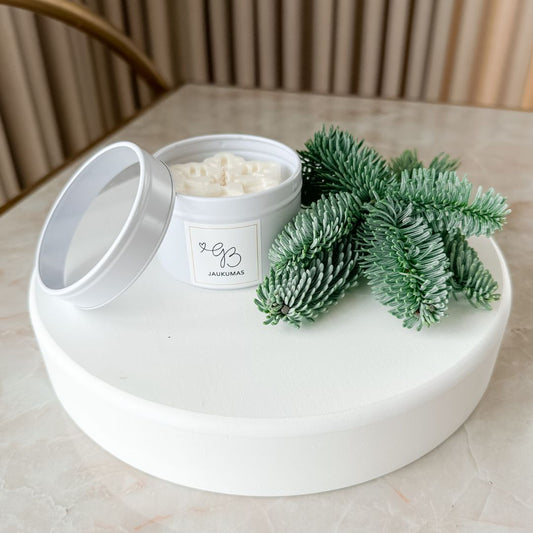 Kvapni Kalėdinė žvakė "Šiandien sninga" | Baltas indelis